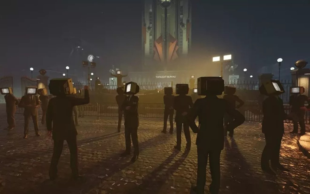 I don’t know how many times I can say this. Trippy visuals aren’t indicative of an interesting or enjoyable game. They can only take a game so far before you want something else. Karma is a game that solely relies on weird and abstract visuals because it feels like the developers had an interesting story idea but had no idea how to implement it or tell the story. You play as a Thought Bureau agent who is like a cop that dives into the minds of suspects to see the truth of what they did. The first chapter of the game is pretty grounded and is the best-paced part of the whole story. You get some trippy visuals in the beginning, and then we are back to what seems like reality with narration while we walk through a pretty interesting-looking town. People have CRT TVs for heads with their faces on the screens, and it feels like an oppressive dystopian world to be in.