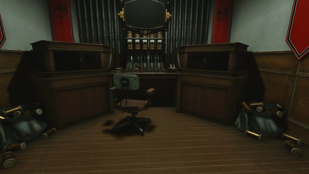 It’s a pretty cool setup, and the pacing of the story is surprisingly good. I played the game all the way through in one sitting because I wanted to see it to the end. The monster is pretty cool and scary-looking, and the scenarios you are put in are easy to deal with but still intense. There’s also a mad murdering priest wandering the hotel, killing anyone who he thinks is infected and not “pure.” The stealth sections involving the monster aren’t hard. The AI is pretty dumb, and one scene had me gathering gas in the parking garage, but the monster wound up always staying at the opposite end where there aren’t any cars. It was a breeze. Every mission will require you to go out into the halls and either up or down stairs to find someone or a supply. One puzzle has you following colored pipes to their proper PSI number to turn on the water to the hotel. It was a fun puzzle and had some intense moments.