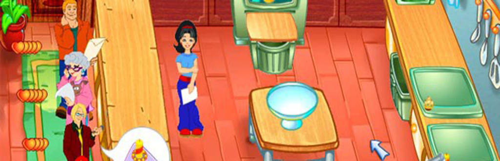 CakeMania has the same play style as Diner Dash, so fans of that game know what kind of fun they are walking into here. CM’s premise is as follows: You are Cloe, whose grandparents’ cake shop must be torn down due to its age, lack of customers, and not being up to code. So, as the sweet girl Cloe is, she decides to spice things up at the shop by adding new ingredients and working it all by herself. The gameplay is very similar to Diner Dash, where you have a step-by-step style of gameplay. A customer comes in, you give him a menu, you wait for him/her to select their cake, you go to the oven and you select the shape they want, after that, you carry it to the icing machine and select the color icing, and after this, they may want a decoration (which you have to end up buying before you can use them).
