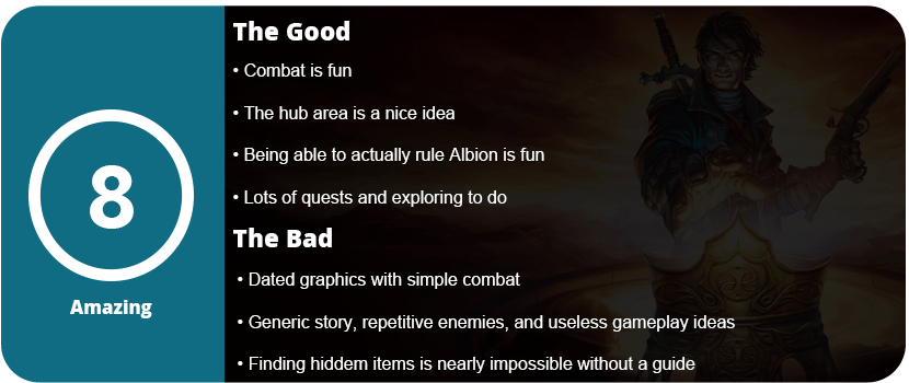1. I enjoyed this game more than most but I’m a little biased- it was my first choice-based RPG (I’m pretty young) as well as Gamefly game and I love The Sims franchise so I loved interacting with all the people in Albion as well. The game does include too many pointless elements, but I guess I didn’t realize that when I rented it because I was just awed by the whole thing. It was also probably the first game to make me care about its story (although when looking back, the story was pretty cliche) and now story is the most important thing to me in games.