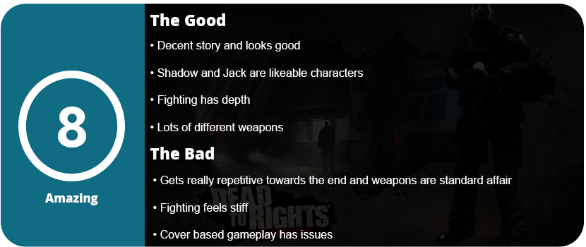 Dead to Rights has been a very rocky series since its debut in 2003. Retribution is not only the best in the series, but it completely redeems the quality and value of what made the game so great. The story isn’t anything new to gamers, with Jack Slate and his dog Shadow trying to revenge his father’s death and also wipe Grant City clean of corrupt cops and criminal syndicates. What is good in Retribution are the voice actors, characters, and action. The guy who plays Jack’s voice is pretty good at putting emotion across to the player.
