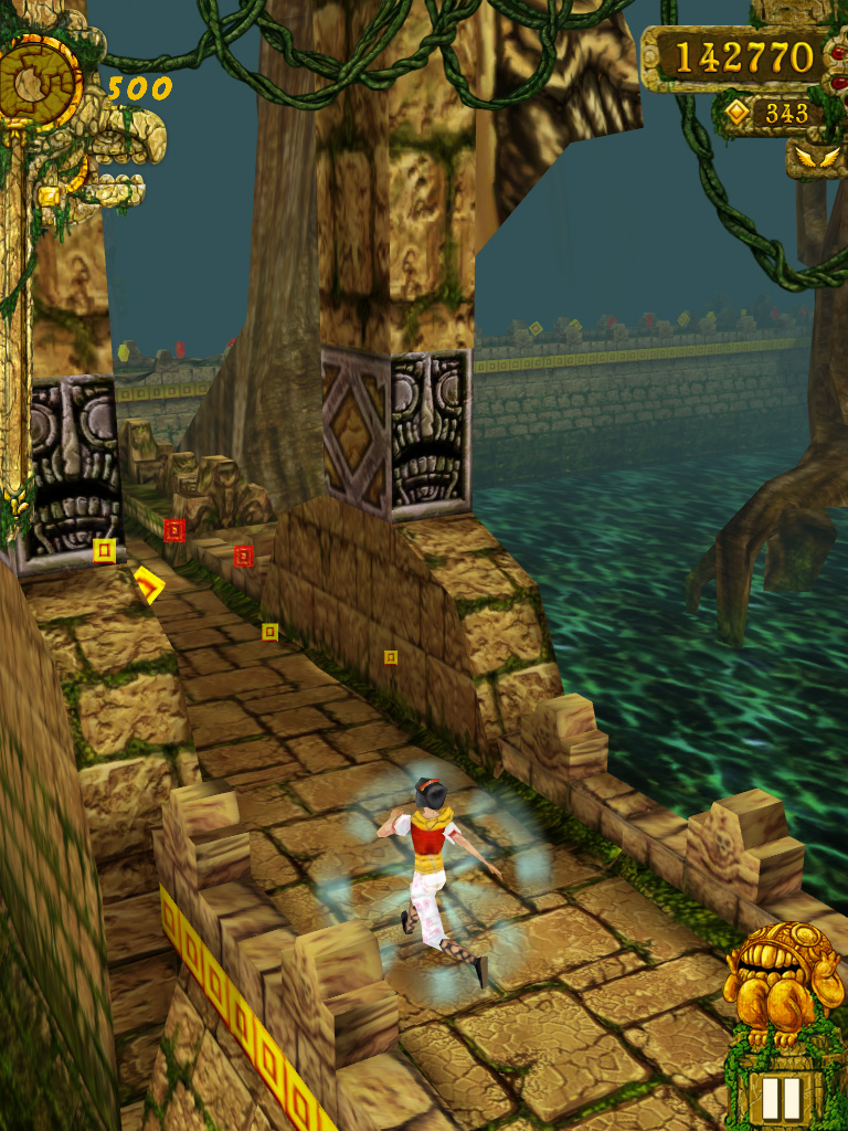 All these “running” games have flooded the mobile market, but they all feel the same. Temple Run is the first to try something different, and it’s actually really fun thanks to one thing: it’s in 3D. Side scroller running games only allow up and down movement, but Temple Run allows left and right movement, plus the game is more fun and exciting in 3D when you can see everything coming at you. The game also uses the phone’s gyroscope to make your character move left and right, and a quick swipe left and right allows you to turn. Swiping up and down allows you to slide and jump, but there are quite a few obstacles to avoid.