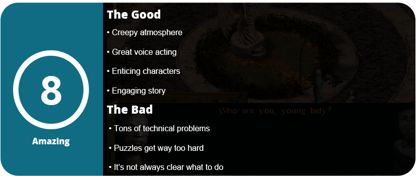 Overall, Sanitarium is an excellent adventure game that shows how great the 90s were on the PC. You can pick the game up on GoG.com for only $6, but I did run into one huge problem. The game crashes a lot on the newer operating systems, and GoG never addressed the issue. If you can, get the CD and use it on an older operating system (like Windows 98), but otherwise, you will have to trudge through the constant crashes.