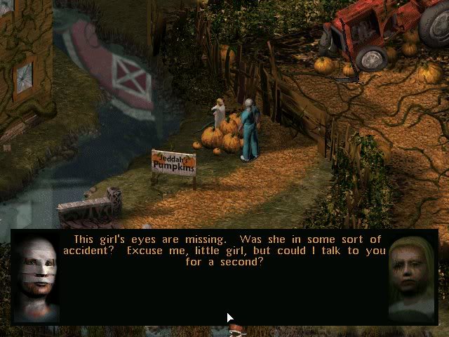 The game isn’t much different from the standard adventure game, where you wander around and click on items to proceed to the next area. Your icon is a magnifying glass, and you hold down the right mouse button to move your character around. This was my first annoyance with the game, being that the characters walk so slowly and there’s no run button. Despite this, clicking on things is actually interesting because most of it doesn’t even pertain to the real world. Your first area is an asylum where guys are bashing their heads against walls, and the people you talk to are completely out of their minds. This gets even worse as the game progresses, but that’s a good thing.