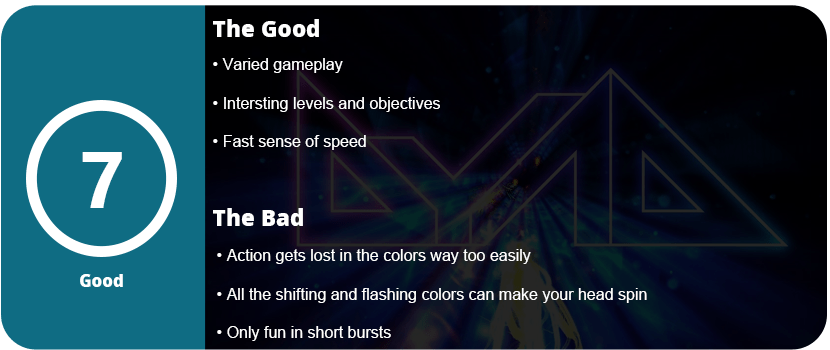 Dyad is a rare game that doesn’t come around very often. While it may slip under everyone’s radar for that big blockbuster title, it reminds us how simpler games can still be fun. The action can be too hectic and can get lost in the ocean of rainbow colors swirling around the screen, but there are plenty of levels here to keep you busy and a great soundtrack to listen to.
