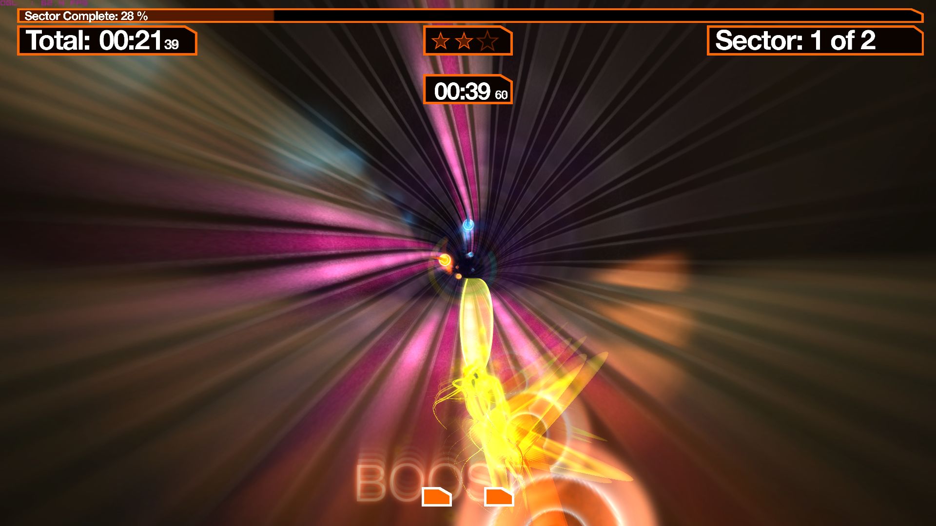 Dyad is a game where you do things in a spiral tunnel. That pretty much sums it up. You are a thing, and you shoot things like the tunnel whizzes by faster and the tempo of the music picks up. Each stage has an objective, such as getting through levels as fast as possible by chaining together the same colored orbs, which will give you a speed boost. Running into these orbs slows you down. I felt the shooting levels were the most fun, and there are a lot of levels here, so don’t worry.