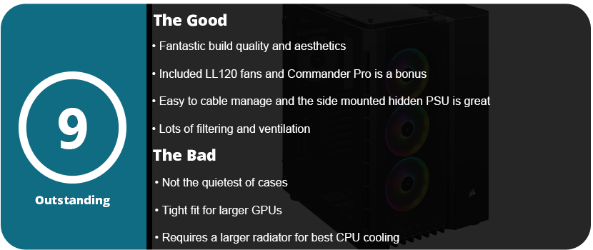 Overall, the Corsair 680X is pricey but worth the money. A lot of that cost is the three LL120 fans, which normally cost $130 alone, and the Commander Pro, which is another $80. It’s a premium case for those who love Corsair’s suite of RGB components, but if you aren’t an RGB person, then this case isn’t for you, and you should get a nonglass case.