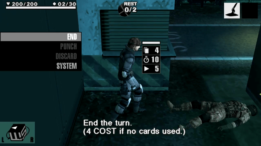 I’m not the biggest Metal Gear fan. I’ve played most of them all the way through, but it takes a certain kind of patience to finish an MGS game. Whether it’s the stealthy trial and error or the sometimes nearly hour-long cut scenes and convoluted story, MGS is an acquired taste. I hesitated on Acid for years and years because it was a slower-paced strategy game set in the MGS universe. Normally, this would be okay, as plenty of action games adopted strategy gameplay and it worked. Acid also uses a card-based system that determines what moves you can make, and this is the bullet in the foot for the game.