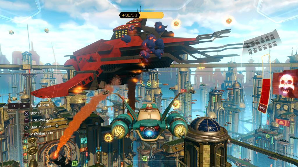 Despite the simple design of the game, it never gets boring. Each planet is beautifully crafted and has a huge graphical upgrade over the first game. There’s just so much more detail two console generations later that couldn’t be done before. Each level is completely different, and all have great pacing. You will never get bored or tired of playing at all. If you really want to keep going, you can collect all 28 gold bolts and all the trading cards in the game. Don’t worry; towards the end of the game, you can get a Map-O-Matic that displays all collectibles on every level. It can add a good five more hours of fun if you want.