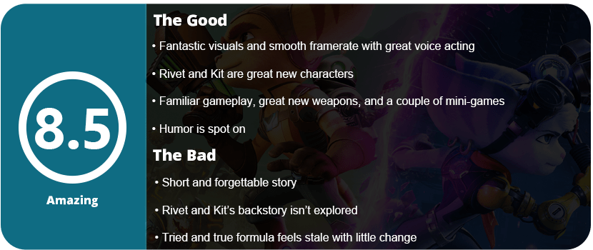 It’s good to see Sony’s classic franchises being brought back. After the original game’s remake, I knew something was coming along, and I was right! We get a brand new next-gen exclusive Ratchet & Clank game without the baggage of the PS4 holding it down. The franchise returns to its familiar roots, which are both good and bad, and I’ll explain why.