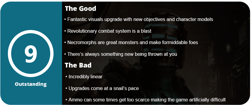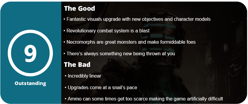 Dead Space has been one of my all-time favorite games. I picked up the original game the weekend it launched thanks to its critical acclaim and revolutionary gameplay for the horror genre. I replayed the game a few times over the years and just couldn’t get enough. The HUD-less stats, holographic overlays, the dismemberment engine, the Necromorphs themselves, and the unique mystery around The Marker wouldn’t really be unraveled until the sequel. The remake brings Dead Space to a whole new generation of gamers, and anyone else who played the game in the past will absolutely love this remake.