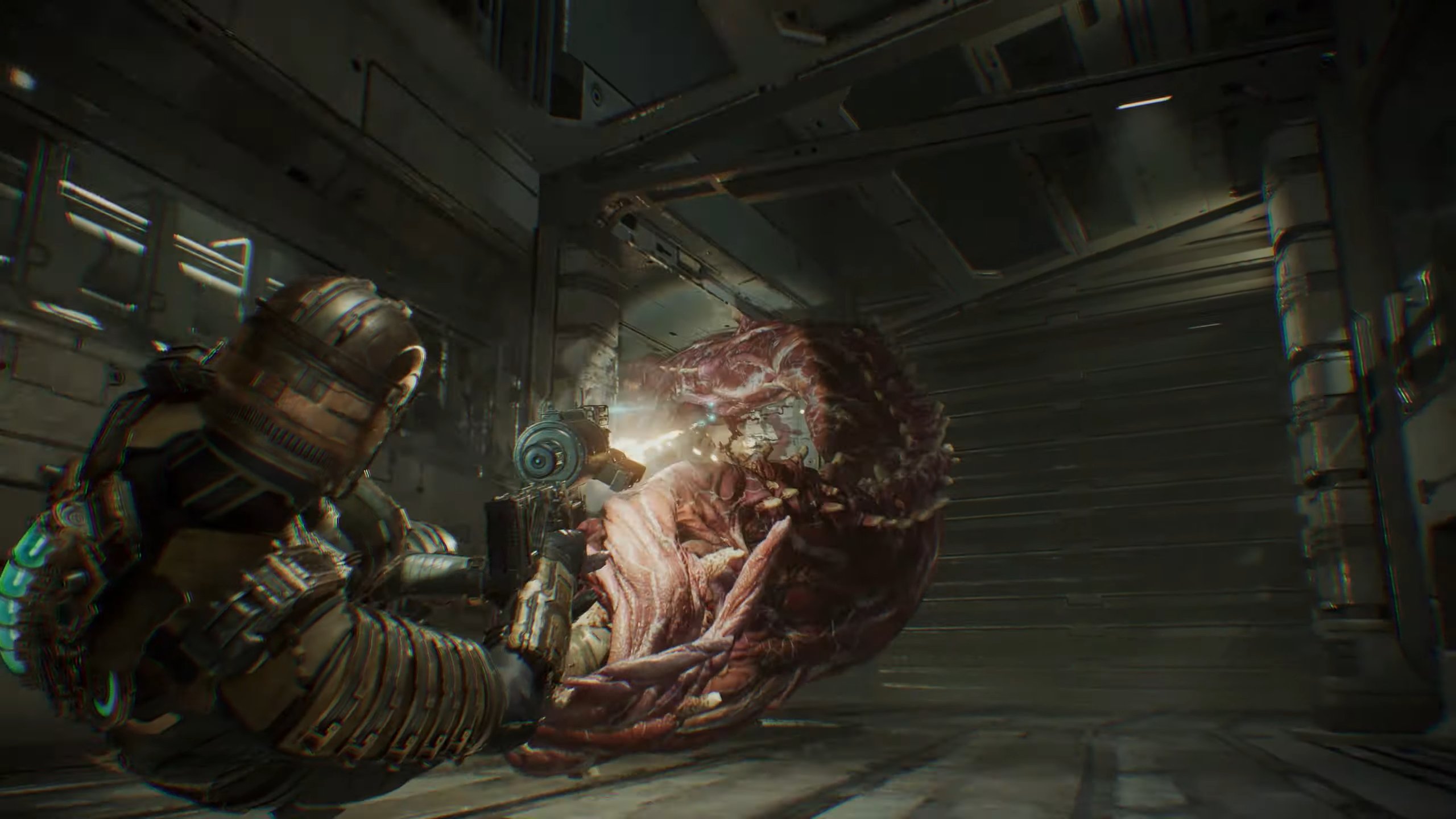 As you start out, you get the Plasma Cutter weapon, which is the best weapon in the game once it’s maxed out. Each weapon has an alt-fire mode, and the plasma cutter lets you cut horizontally or vertically, and this matters. Necromorphs come in all shapes and sizes. The standard kind runs at you, so it’s best to cut off their legs and then their arms. There are small little babies with three tendrils that shoot at you. Cut off the tendrils, and it will run away. There are large, dog-like ones that should have their arms cut off as they have no legs. Then there are large bosses peppered throughout the game that can be pretty challenging. There’s even a Mr. X-style hunter that chases you later in the game and can only be killed with something powerful. These types are introduced throughout the game, plus many more that I haven’t mentioned. Necromorphs will even sport armor later on, so you can only cut off limbs that aren’t guarded.
