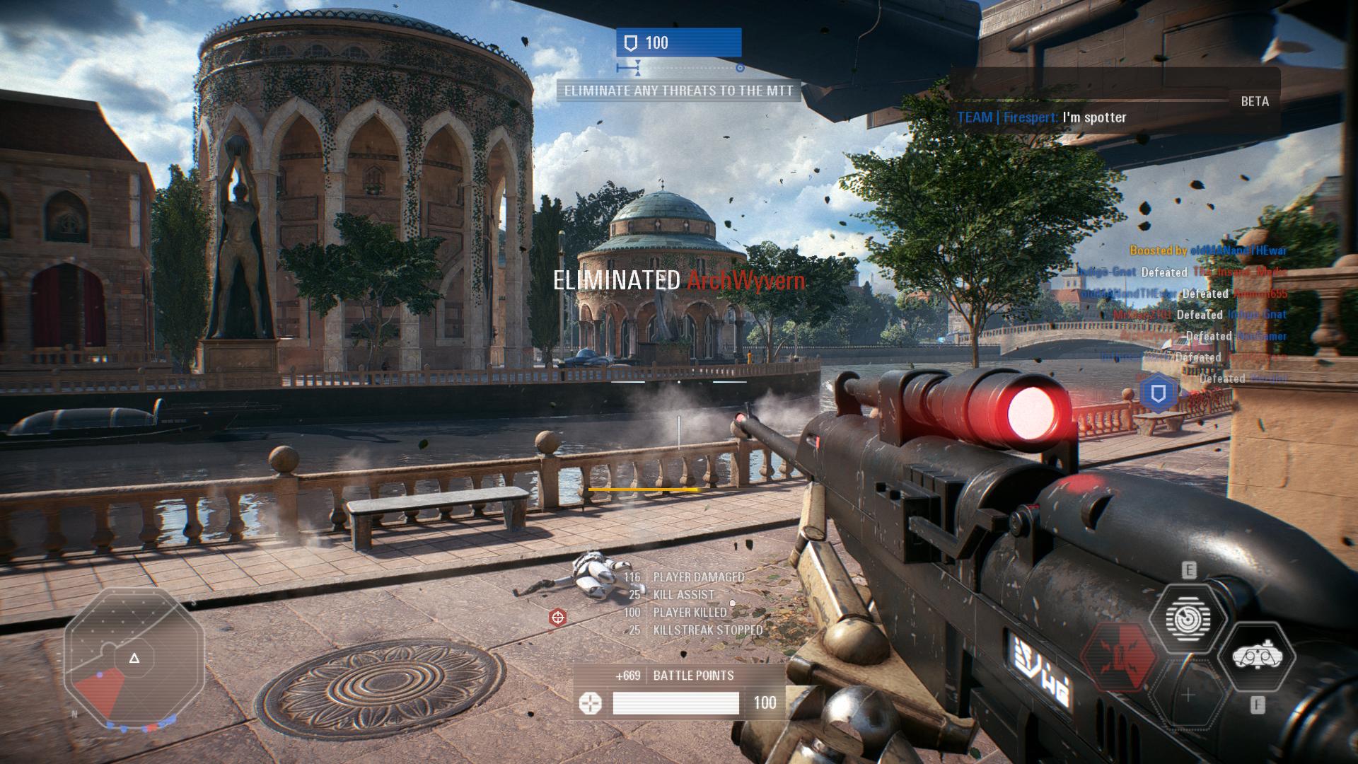With that said, Motive did add a single-player campaign, which was sorely missed in the first game. While the campaign is nothing to write home about, it’s there, and the effort was appreciated. You can blow through the whole thing in about 4-6 hours. There is a three-mission epilogue you can play through as well, which maybe adds 45 minutes to an hour at most. You play as a brand new character created for the game Iden Versio. She’s a great character on screen and very charismatic. The First Order elite turned resistance fighter is a nice touch, especially since you start out as the enemy in the game. Sadly, the game doesn’t really go anywhere story-wise outside of telling a small battle before the events of Episode 7. A lot of your favorite heroes and villains are present, such as Boba Fett, Luke Skywalker, Lando, and Chewy.