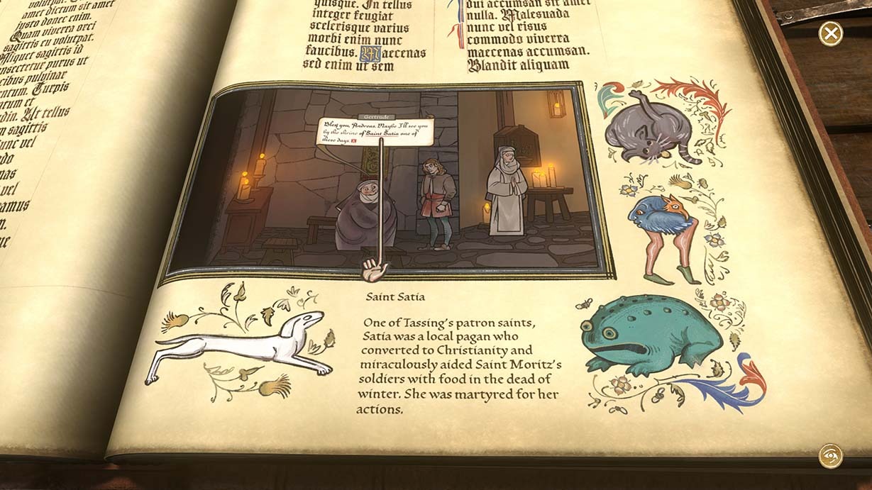 There is a lot of history to learn, not just about the town of Tassing and the Holy Roman Empire in general, but also about the characters. There are a lot of characters, and thankfully, the writers did a good job portraying their personalities throughout. Towards the end of the game, everyone feels like familiar old friends, and you can feel and watch these people grow and change over time. While there are a lot of characters, the game does eventually start moving at a steady pace. There are no RPG elements, but you do get to choose specialties and subjects you are experienced in, such as languages, trades, and visited areas. This can help unlock dialogue boxes that have icons next to them. The conversations feel very organic, and you can’t tell whether there are big choices or not, which is kind of nice. It feels more realistic in the sense that when the consequences come up, you have no idea how it happened, but in a good way. There isn’t a way to predict a major plot twist this way, and it can add to replayability.