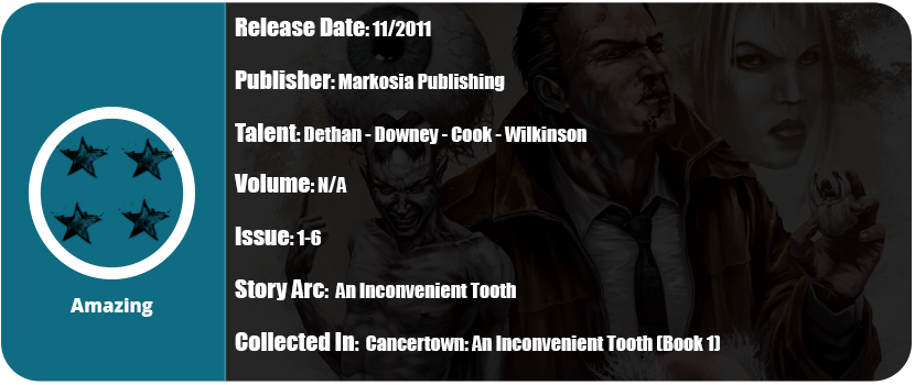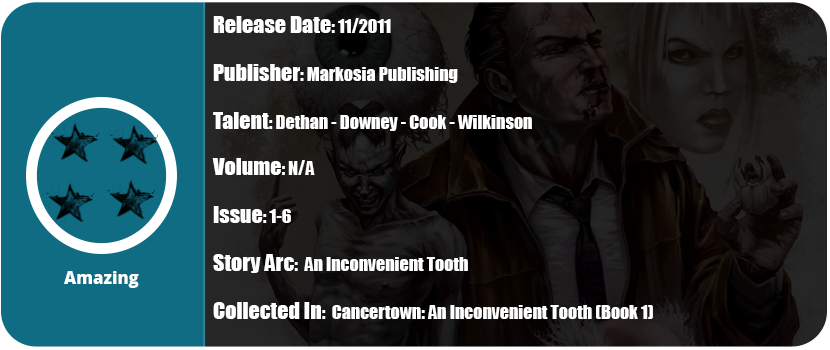 Cancertown is a rare mature comic; it delves into the psyche of the human mind rather than superpowers. I loved watching Vince fall apart, and I was horrified at the same time. The characters are fantastic and so original that you won’t put the comic down. If only the story wasn’t as mixed up and complicated or just told better, but that’s the only issue I can pull from this series.