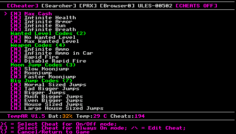 TempAR is superior to CW Cheat and is basically a Game Shark or Game Genie for hacked PSPs. It also works on PS1 games. TempAR offers advanced features like memory searching and debugging, and is easier to use for complex cheats, while CWCheat can be buggy and slower. Here is a guide and installation. A link to the cheat database is here. It’s being updated regularly.