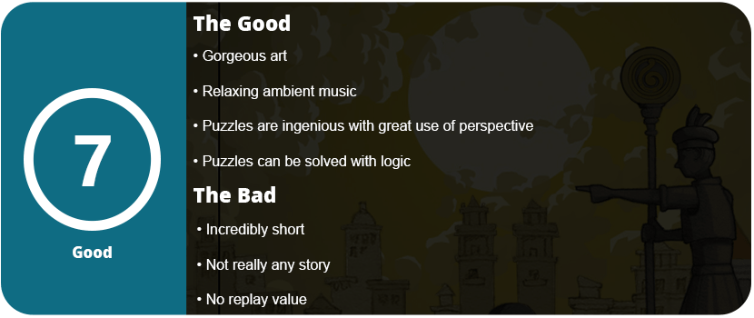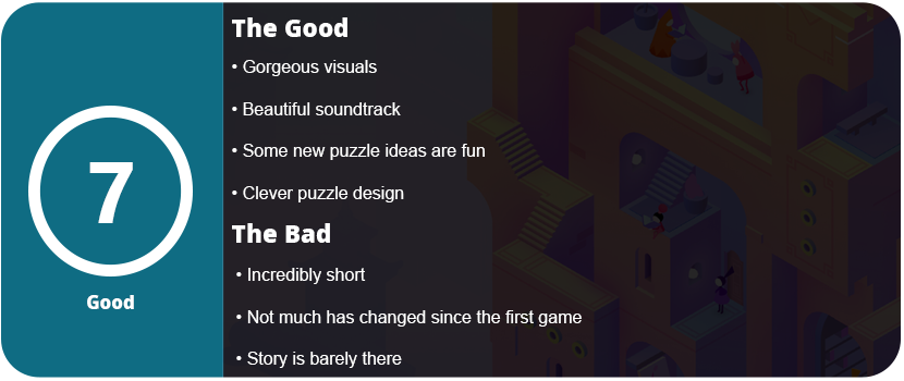 With all that said, the game is still just way too short. There are only 11 levels, and you can finish the game in a single sitting. I wanted more. I have always wanted more from this series. They are spread so far apart that when they come, you cherish them like an expensive sweet. The soundtrack is ethereal and beautiful, the visuals pop on OLED displays, and the level design is like no other. These games are well worth a playthroughif you love puzzle games. Just don’t expect a lot.