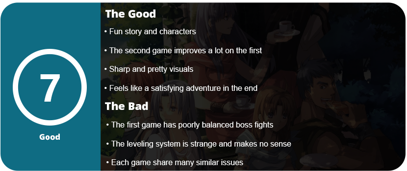 Overall, YS II is a good sequel to the first game. With enough new content to explore, an interesting story, and fun characters, while I wouldn’t say the story itself is memorable, the adventure itself is fun. I just wish the magic system was more expanded and there was less backtracking. Most of the game’s fault comes from the cryptic items and confusing dungeon layouts, but it’s manageable with a guide. It’s a fine Ys game to send out with the 80s and still remains a solid RPG today.