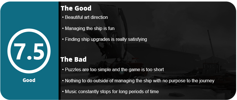 Far: Lone Sails has very interesting gameplay mechanics, but it’s hard to recommend outside of sheer curiosity. Don’t expect a grandiose or heartfelt story here; just an interesting game to look at and button-pressing gameplay.