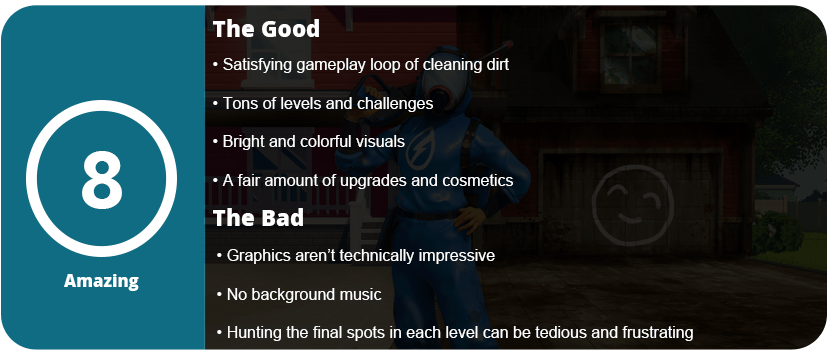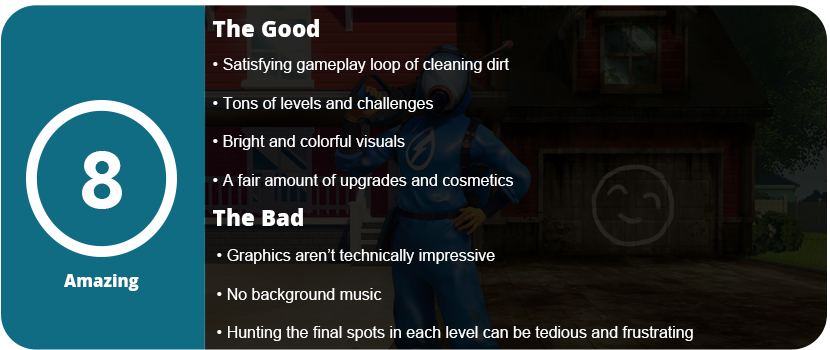 Again, you have to like this kind of thing to see an appeal to it. The visuals are bright and colorful, but rather basic and simple. There is no raytracing, AI anti-aliasing, or anything complex rendering-wise. The game can technically get very repetitive, but that’s actually the point of this game. I feel many may mistake this game for a business simulator when you only do the power washing and buy upgrades and cosmetics. I had a blast (no pun intended) with this game and FuturLab is still putting out content that I need to catch up on. Overall, PowerWash Simulator is one of the most relaxing and satisfying games I’ve ever played.