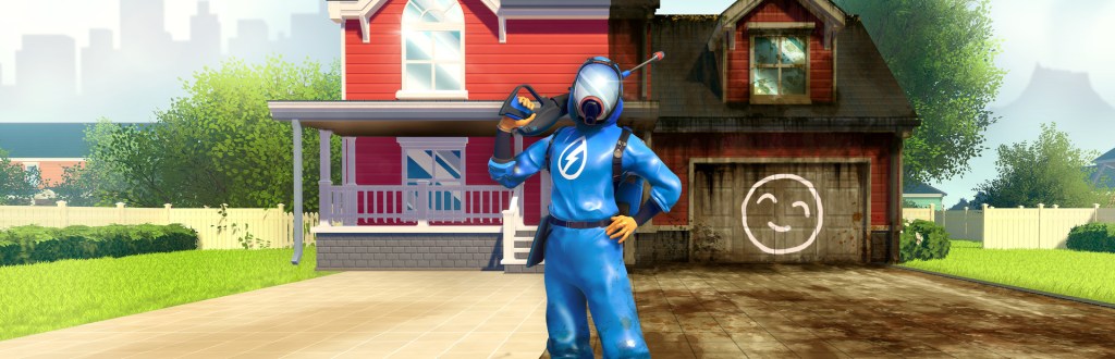Some levels are multi-storied so you get step stools, ladders, and scaffolding that can be moved around and put wherever you need it. There are a few levels that have some frustrating buildings to clean such as the giant shoe level. There is a meter on each surface that shows how complete it is and sometimes it can be hard to find that one dirt spot that’s keeping the surface from dinging. Thankfully there is an illuminate dirt button that turns all dirt a golden yellow for a few seconds so you can see what you’re missing. Getting down the last percent in each level can get annoying as you’re just hunting down that last dirt spot. There is also a list of each surface and the percentage that they’re cleaned, so you can at least eventually narrow it down.