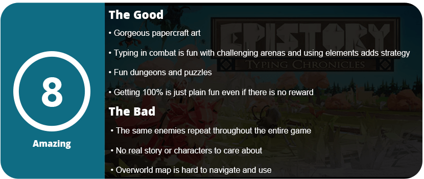 Overall, Grim Fandango is a fun story with some fun characters while you’re in it, but you will quickly move on to other things as something about this game doesn’t quite stick. It feels more like a Pixar cartoon with gameplay bits in between than a full-blown game. It looks good, sounds good, and the voice acting is excellent, but many won’t finish the game just due to how obscure getting through everything really is.