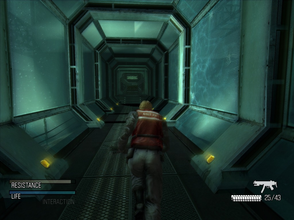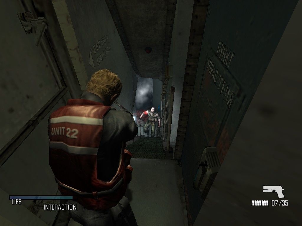 Of course, it’s never that simple. It’s not just a generic zombie virus. Instead, you play as a U.S. Coast Guard agent (neat idea), Tom Hansen. He’s your typical generic blonde-haired action dude with no personality who tries to be amusing but never is. He answers an S.O.S. and tries to rescue those on board. You find out there’s a species called Exocels that is infesting everyone on board. The scenario leads to zombified crew members that wield knives and can sometimes shoot. There are also regular humans, who are the Russians on board trying to kill you. It’s not a very intriguing plot or very deep. The game is only 4-5 hours long, so there’s no room for any plot development. Diaries scattered throughout the game provide the majority of the Exocel DNA exposition. There is only one other character, Anna, who is a Russian daughter of the person you’re rescuing. It’s not important, to be honest. There is a small escort section at the beginning of the game, but after that, you mostly do not see Anna again, at least not with the character you are rescuing.