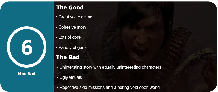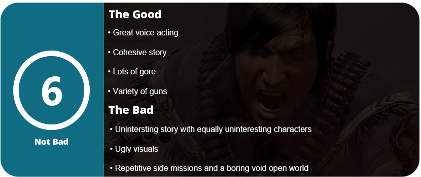 Overall, the game is very linear, ugly, and pretty repetitive. The side missions don’t add any variation, the upgrade system can be skipped entirely, and the open world is void of life. The only redeeming value of this game is its great voice acting, many cut-scenes, and short length. The story isn’t even anything noteworthy either, and the same goes for the characters. With their short length, they have no time to expand or grow on us. We get no backstory. Just the here-and-now, and that means nothing when characters die. I would only recommend this game if you’re itching for a Western game and need to go back in time, but this game really did not live up to the hype upon release.