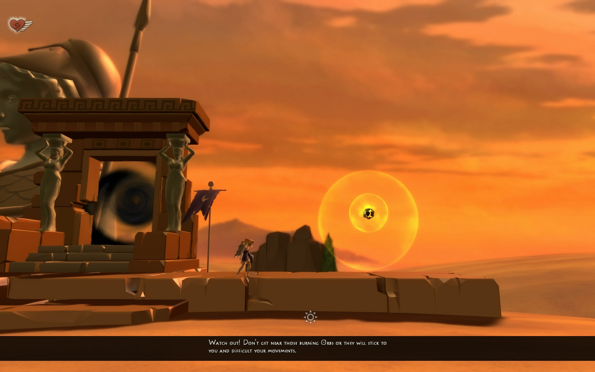 You are Nyx, who is a winged goddess that falls in love with Icarus, but the sun-god Helios releases rage upon the gods and burns the earth into a fiery apocalypse, but you insist on defying the gods to save Icarus. While the story isn’t very deep, there is one there, and you do want to see what happens to Icarus at the end. Not very often will you run into “cut scenes” that have just some text across the screen and gibberish being spoken. This is an indie game after all, so you are probably coming for the unique gameplay.