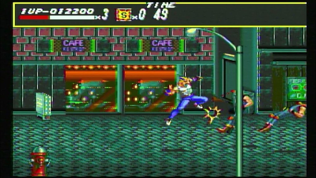 You can play as three different characters. Axel, Blaze, and Adam in the fictional city of Wood Oak. These three crime fighters follow a very basic story that was typical back in the day. You only played RPGs for stories. The controls are rather strange and challenging to get used to. I found the characters’ momentum to be wrong. You walk side to side slowly, but up and down is twice the speed. This lets enemies hit you cheaply when you dodge. There is no dodge button, so you need to predict the enemies’ moves so you can sidestep out of the way. Jumping attacks are very floaty and almost useless if you jump too high. Additionally, I observed that the execution of combos and various moves was haphazard, lacking any discernible pattern.