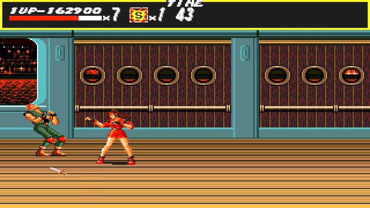 Sometimes I would do a spin kick, grab an enemy, and flip over them. While all these moves look cool on screen, I could not figure out a combo to do them. I was mashing A the entire time, wiggling the D-pad. There’s not much else to it. The game isn’t too difficult until you get to the bosses. Suddenly, you can wipe out your health bar in just four hits. Like any 16-bit annoying trope, the last level is incredibly long, and you go through a boss rush before fighting the final boss. Once you get to him, you can answer a question, and if you choose yes, you will be dropped two levels back to do it all over again. Lives are very scarce, so it’s important to pick up weapons and use them whenever you can.