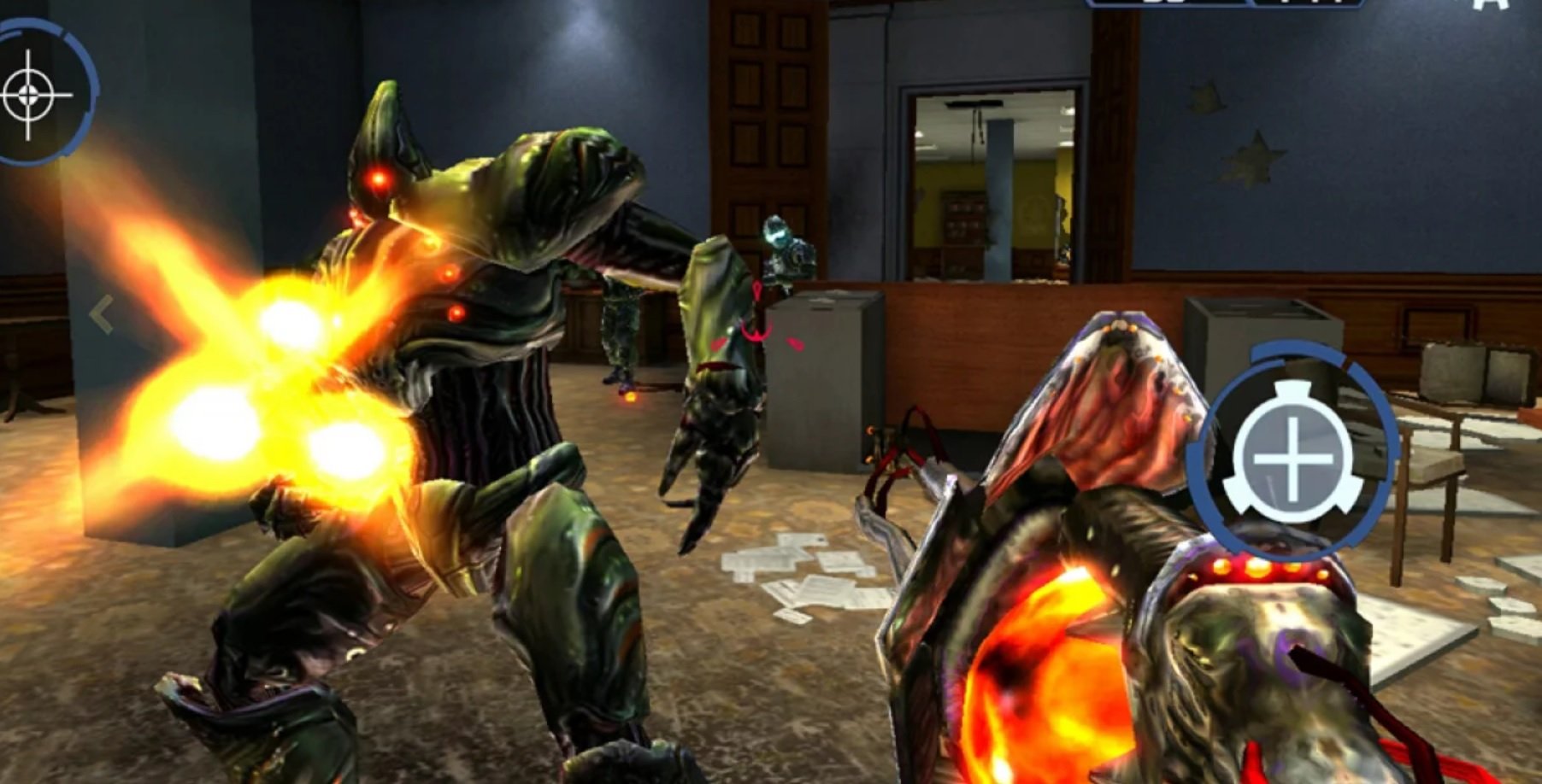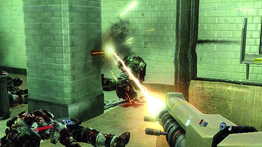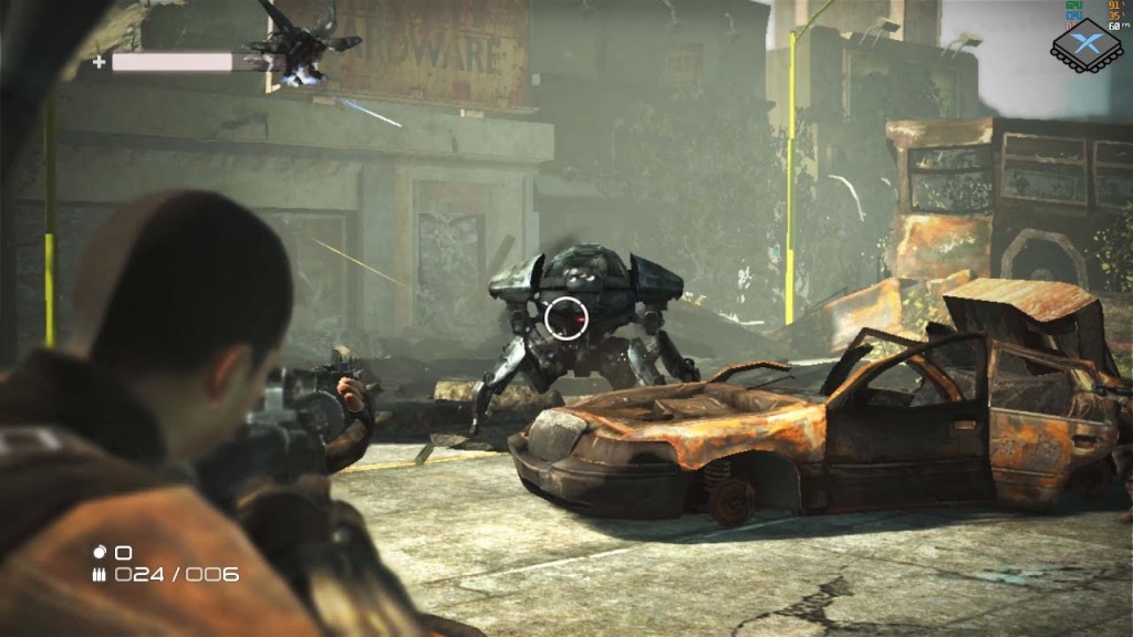 There are boss fights this time around, which are pretty cool and cinematic. Your environment is the United States this time around, and you jump from various cities such as Chicago, Louisiana, and San Francisco, just to name a few. The varied locales are a nice change of pace from the previous game, but the game changed its boring color palette from gray to brown. Everything in this game is brown, with very little color. At least we get new enemies to change things up, like big Titans; these guys rush you and have shields; there are Chameleons, which will one-hit kill you unless you shoot them down (one-shot kills them); and Mauraders, which are giant, four-legged creatures that show up a couple of times in the game. The largest problem from the last game returns, and that’s the insane difficulty. This game is so poorly balanced. It starts out easy and nice, and then about halfway through, you’re restarting areas over a dozen times because there isn’t enough ammo in the area, you don’t have the right weapons, the cover is poorly paced, or there are just too many in the area for you to take on. You die in just a couple of hits, but the health meter was axed for regenerating health, and the “red screen”
