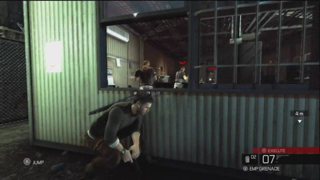 You slowly unlock a couple of abilities. There are adrenaline shots you use for bullet bending and slow-mo dodging between covers. Honestly, the bullet-bending is a really neat gameplay idea. You can pull up a line that you move around that locks onto enemies. When it’s white, the bullet will get them around the cover and corners. The downside is they can’t be moving, but if you hit them, you recover that adrenaline shot back. You can chain these together easily, but it kind of falls apart towards the end of the game. Tougher enemies get introduced and can dodge your bullets. Bullet-bending no longer becomes a one-shot that kills most enemies. Usually, they stagger out of cover, and you have to continue the kill. You still get the shot back, but it can get quite annoying because all of these enemies do become bullet sponges in the end or require melee attacks.