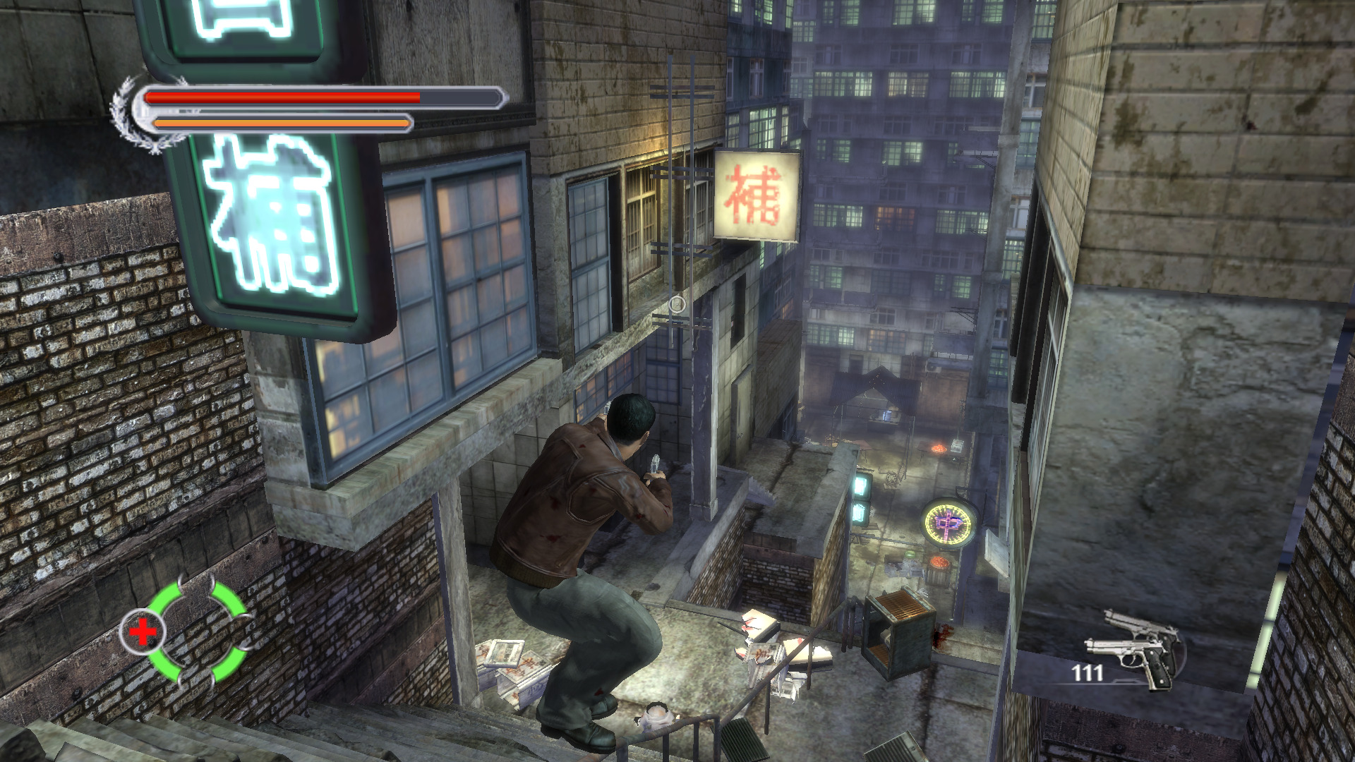 Stranglehold is a sequel to John Woo’s Hardboiled Hong Kong cop action movie from the ’90s, starring Chow Yun Fat. Both star in this game, and Chow reprises his role as Inspector Tequila. I will say that the story is really stupid, and this has a lot to do with the 4-hour run time of the game. It’s incredibly short unless you die a million times, which can be possible. The story is lame and typical. Tequila’s daughter and ex-girlfriend get captured, and he gets stuck in the middle of two rival Hong Kong gangs, the I-9s and the Dragon Claws. One is new blood, one wants the “old ways” back, and Tequila’s daughter is the bargaining chip to get the police off their backs. The voice acting is pretty bad, even Chow’s acting is kind of phoned in. The main star of the game is the gameplay, however.