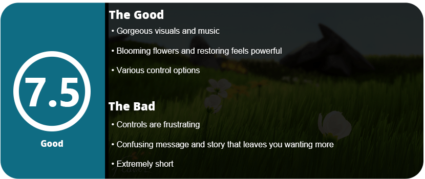 That game company is a really talented bunch. With Journey and Flow under their belt, they are known for making artistically stunning games on Sony’s consoles. When Flower was released on PS3, it amazed gamers around the world with its gorgeous visuals and music. It’s a very simple game, but that’s okay for what it does.