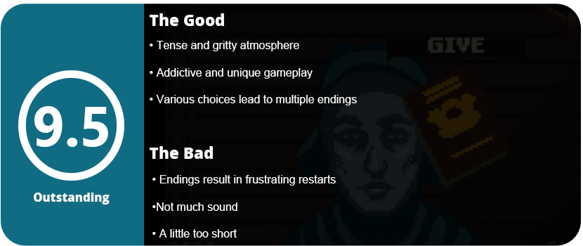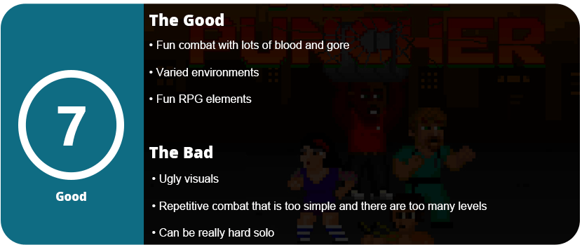 As it is, Fist Puncher is a fun weekend play-through with friends on the couch, but nothing more. Some people may not get very far and get bored fairly quickly; others may love it a lot and play through to the end. Despite all the flaws, the game has solid controls, a fun RPG system, and some quirky humor.
