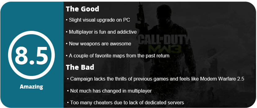Well, what a treat! Modern Warfare 2 is considered the best game in the earlier series, and the campaign was most definitely the best and most memorable. The game takes place right after the end of the first game, with the Russians invading the United States for World War III. You play as various soldiers in this war and bounce back and forth trying to stop the bad guy, Makarov, but the story takes a crazy twist at the last mission.