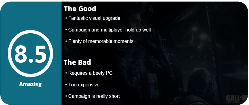 The question here is: is there anyone asking for these games to be remastered? Most people usually only stick around for multiplayer, and it’s rather strange to only remaster the campaign and release the multiplayer section later. Most Call of Duty players skip the campaign and only bother with multiplayer, and it’s not like the Call of Duty campaigns are anything to write home about. Sure, they’re entertaining and exciting, but they don’t last long, and the story is a trite modern military train of nonsense, so who is this game for?