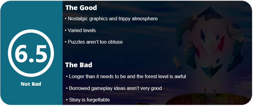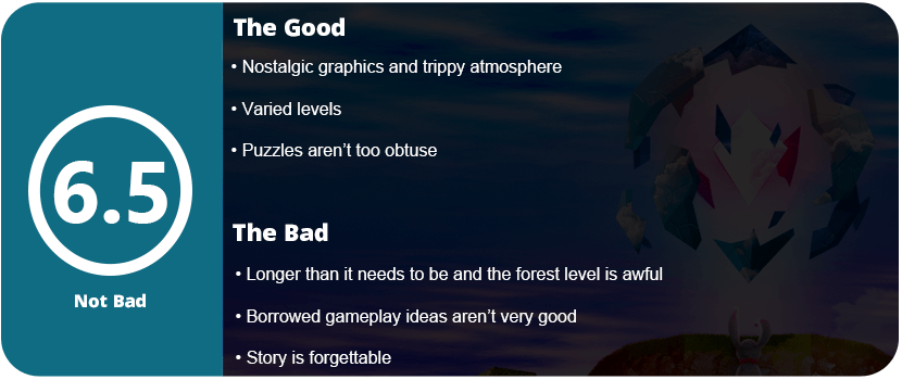 This is a game of moving art. The amount of work that went into the level design and everything surrounding it is astounding, trumping even AAA titles with their multi-million dollar budgets. This is a game you won’t forget. Play it on your nicest display (preferably an OLED), turn off the lights, and watch your room burst with color and life as you bring life back to this desolate world of sand and death.