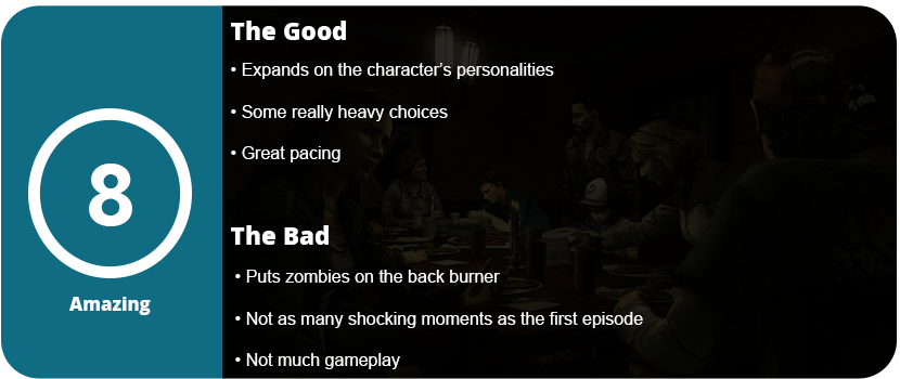 Overall, Episode 2 doesn’t have as much action or surprising moments, but it expands the character’s personality and gives you some seriously heavy situations that force you to make big decisions. The episode also puts zombies on the back burner for the problems on this farm and the group, so be prepared for that.