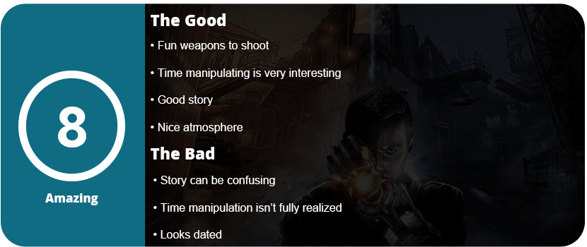 The story is enough to push me through the frustrations; the dialog was witty and the voice acting was superb, but I just felt there was something missing. There just wasn’t enough of it between long stretches of repetitive gameplay to make it worthwhile in the end. It’s a very interesting world, and I felt it got lost in the survival stealth aspect of the game. I wanted to explore more freely, but I was on a time limit; I couldn’t run and climb where I wanted, and doing anything besides being a good citizen got me caught and took five minutes to become not wanted.