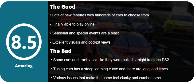 My favorite feature has to be the new navigation menu. Being able to select races, customize your car, and jump to various cards with just the D-pad is great. There’s not even a need for a map. Select the race you want, and it will put the GPS line on your mini-map. Want to drive a different car? 3 D-pad clicks, and you’re there. This just seems nearly revolutionary for the racing genre, as they have been plagued with nasty menus for years. Outside of the menu are excellent racing moments and various types of races to do.