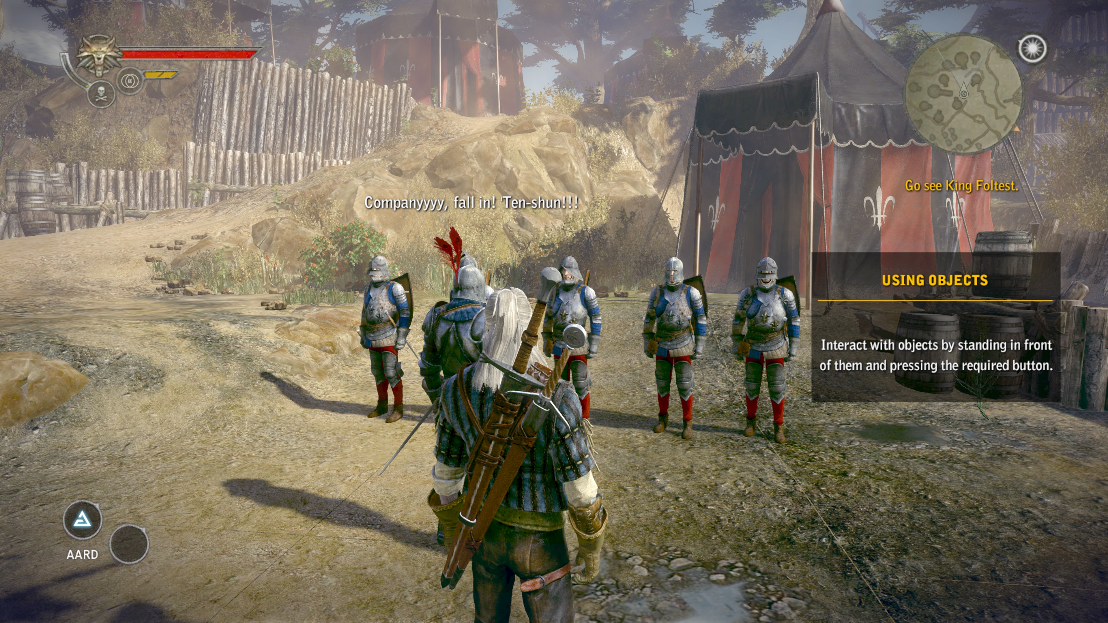 The Witcher is also famous for its signs because witchers can’t use magic like sorcerers or mages can. There are six different signs, and they use chunks of vigor but recharge over time. These signs are vital to winning in combat, especially against bosses, so learn to use them in tandem with sword combos, and you can win even the toughest fights. One last thing you can use in combat is Places of Power, which you find with your wolf medallion. Activate it, and you may find, out in the woods or in wild places, signs of power that give you temporary stat boosts. These come in handy early in the game (especially in Flotsam) when you are at a low level.