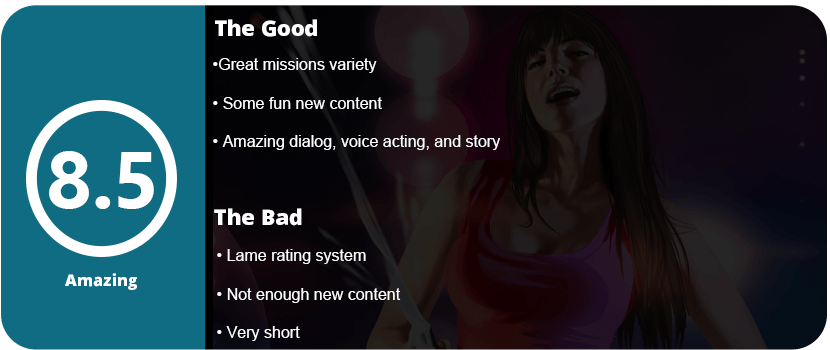 The visuals of the game are pretty impressive, but there is a lot of slowdown and pop-ups. LCS pushes the system to its limits, and the amount of detail is crazy. There are reflections when it rains, tons of traffic and pedestrians, and large buildings loom over the horizon. The sound is great, and it feels like a living, breathing city despite how little interaction there is. But, on the surface, after the story is over, there’s no real reason to come back unless you just want to ride around, causing mayhem.