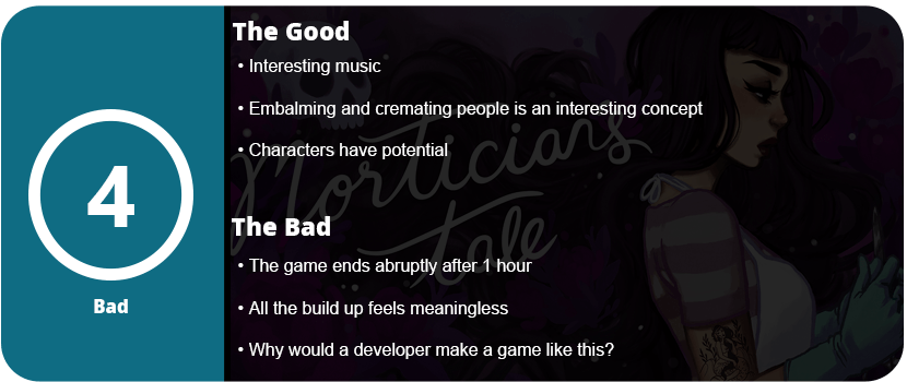 I understand everyone wants to praise indie games. I get it; I really do. It’s a middle finger to the corporate world, and developers can explore interesting new ideas without the weight of a watchful eye. A Mortician’s Tale kind of explores this exact idea, but with a funeral home.