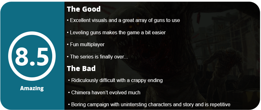There’s multiplayer here if you really need to keep playing, but one playthrough was enough for me. Resistance 3 has some amazing visuals, despite some ugly textures here and there, and will satisfy fans with a difficult and challenging campaign. FPS players used to Call of Duty and Halo will probably hate this game (and the series), so only hardcore FPS fans should take the path of Resistance.