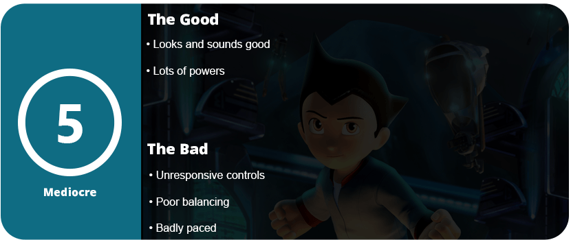 While the story has potential and the game looks and sounds good, the game is killed by the terrible controls and badly thought-out design. You can upgrade your powers, but you probably won’t get far enough to do that before hurling the game out the window. Astro Boy is supposed to be fast-paced and fun, but all we get is a sluggish, hard, unresponsive borefest. Think of a delicious-looking piece of candy. It looks yummy, has a great color, and shines on it, and when you bite down, it tastes like vomit. That’s Astro Boy in a nutshell. If you really liked the movie, just go play Omega Factor on GBA or even the other mediocre Astro Boy that came out a few years ago on the PS2.