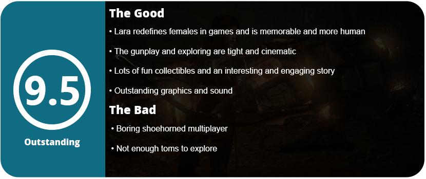 The game opens up with an epic prologue, just like the last two games, and we see how hardened Lara has become since the last game. The entire game is about Lara and Jonah trying to find something called the Box, which is a Mayan object that can stop the world from ending. It’s a little more complicated than that, but the story is much better than Rise’s story. At least we get more glimpses of Lara’s past and some advancements in her character, like we saw in the first game.
