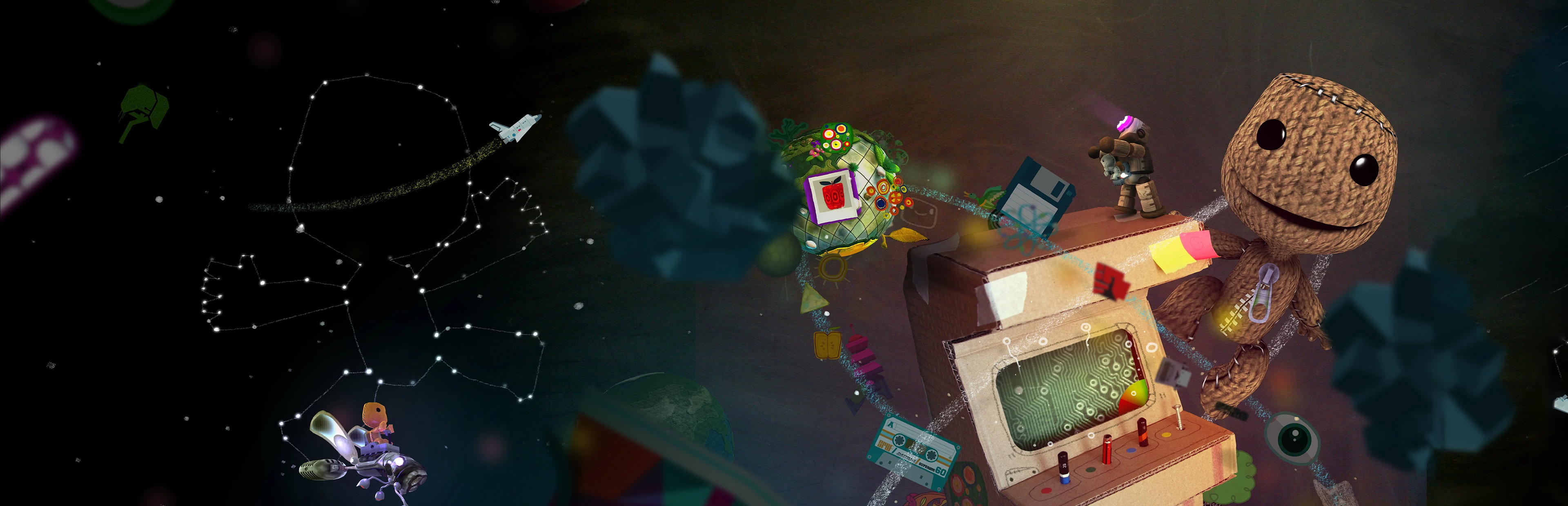 LBP2 is really co-op heavy, and I found myself finding people to play with online or having friends join me. The game is a blast in co-op and probably the best way to play. I loved the entire story mode because it was just so much fun. Plain and simple. One level had me using different weapons, like a sprinkler helmet, to put out fires on platforms and grow vines into platforms. Another level used a cupcake launcher, which acted as a remote mine. A later level used a few different animals as vehicles, such as a bunny, a hamster, and a bee as a shmup vehicle. It was all fun, colorful, and filled with imagination. The papercraft art style makes you feel like a kid again, playing with paper and toys. LBP2 is just one of the most imaginative games you can get your hands on these days.
