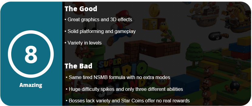 There was never a time when a mainstream Mario platformer was bad—2D or 3D. In the early 2010s, Nintendo was dialing back the more open 3D Mario adventures in favor of more linear 2.5D platforming titles. This shift was sparked by the popularity of the New Super Mario Bros. series, which then spun off two 3D Mario games that were kind of in between that and Super Mario Galaxy. Super Mario 3D Land, which was exclusive to the 3DS, was a lot of fun; however, it was too easy and seemed more suitable for children. The levels were super short; they could be completed in a matter of a couple of minutes, and overall, the game was a perfect weekend rental. Mario games are not typically ones that require 100% completion, since the only reward is personal satisfaction; however, Nintendo attempted to change this with Super Mario Galaxy. The reward is the challenge.